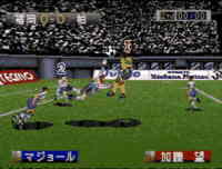 ポリゴンサッカーは既に数タイトル発売されているけれど、肝心なのは1/60秒処理というところ。今までのポリゴンサッカーは、全部1/30秒処理で、動きが粗くスクロールするとガクガクしてみえました。ところが、”JリーグGO