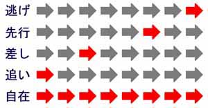 でのその馬のベストの位置です。矢印の8つの位置により、「逃げ」「先行」「差し」「追込」「自在」区別できます。