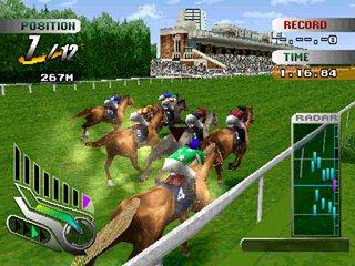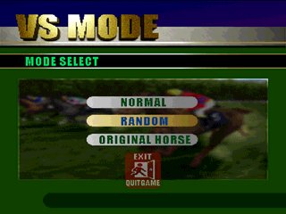 VSモード 今回の『ギャロップレーサー3』では2P対戦が 別モードになり、機能が追加されました。 従来の1頭VS1頭対戦に加えて、数レースでの 順位点の合計を競う「団体戦」ができます。 |