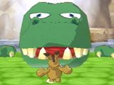 ワニが口を開け閉めするタイミングにあわせて、かまれないようにサイドステップするんだよ。