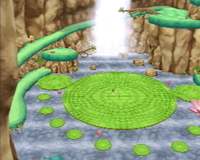 水に落ちないように、ハスのはっぱをわたってゴールをめざすよ。最後にはワニが待ち構えているから気をつけてね。