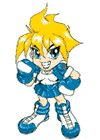 華僑の娘で横浜の中華料理店「満腹軒」の看板娘。「聖・テーカン学園」では委員長も務める。自分と正反対な性格の、野蛮でケンカっ早いライヤが気に入らないらしく、昔から何かにつけ争っている。胸にのうちに秘め足る情熱が天使とのシンクロ度を高め、全身の硬質化を果たしており、そこから繰り出される炎熱攻撃は強烈である。